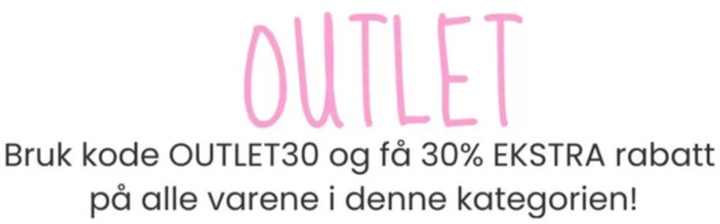 Bruk kode OUTLET30 og få 30% EKSTRA rabatt på alle varene i denne kategorien