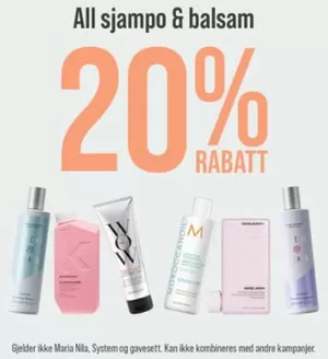 20 % på all sjampo og balsam hos Nikita Hair