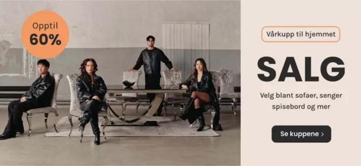 På vår plattform finner du et stort utvalg av produkter med fantastiske kampanjer som hjelper deg med å spare penger på dine kjøp. Bla gjennom A-Møbler-katalogene og ikke gå glipp av eksklusive tilbud tilgjengelige i april. Vi gir deg også detaljert informasjon om rabatter, salg og sesongens nyheter innen Hjem og møbler.